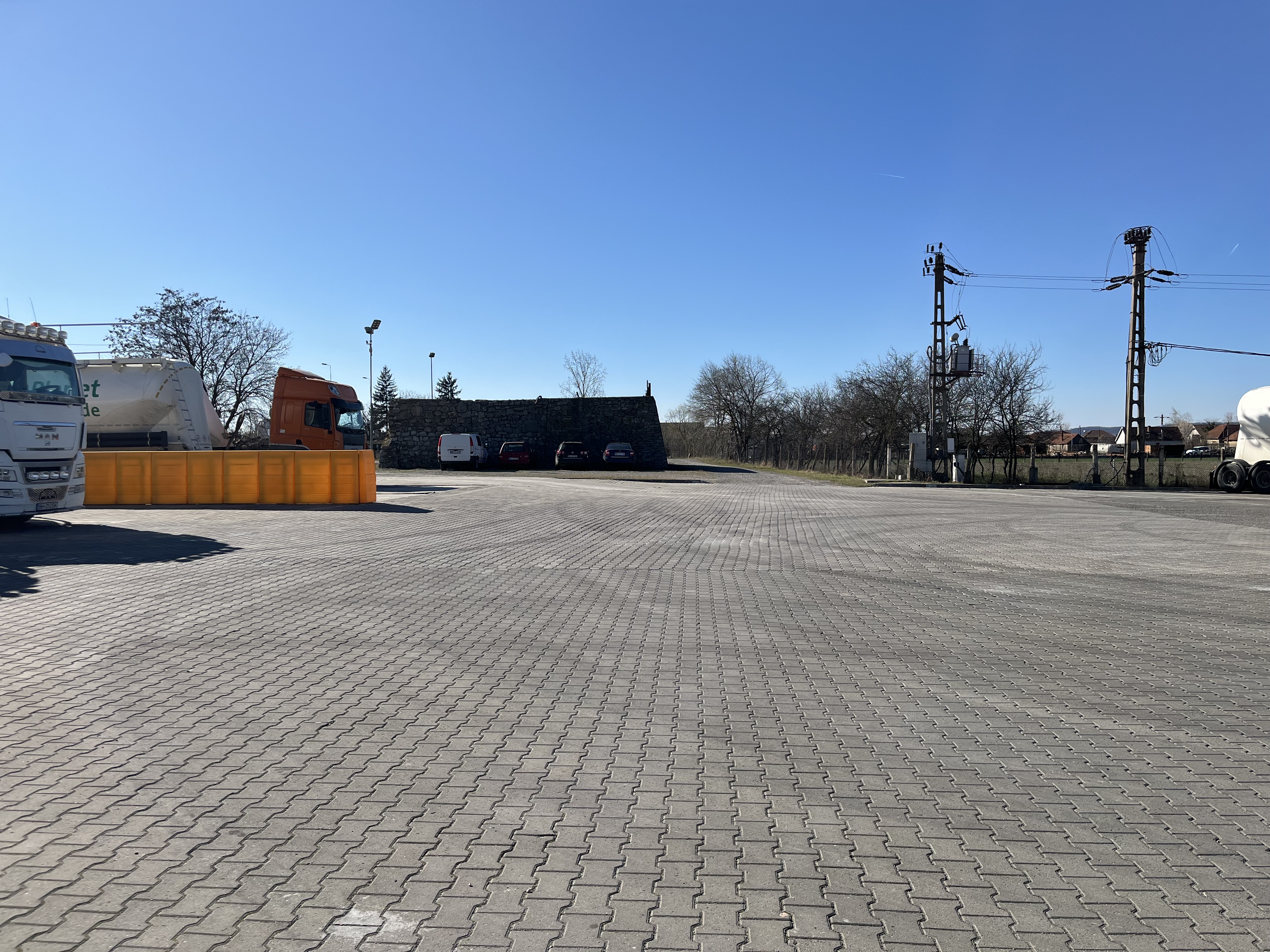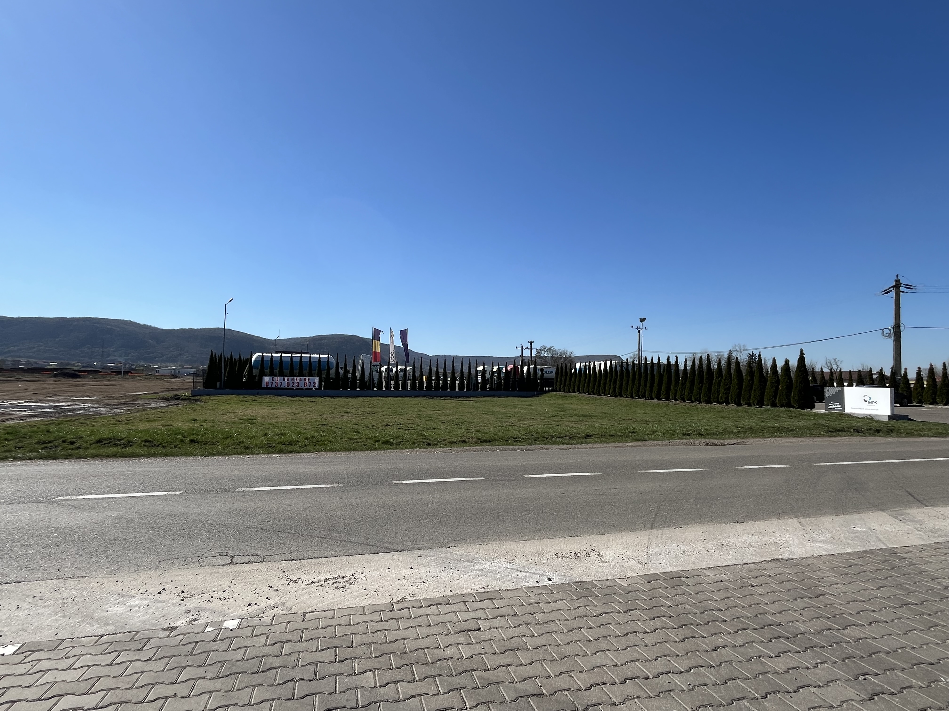 b) Est: teren liber, proprietate privată, cu îngrădire parțială, sau hale;